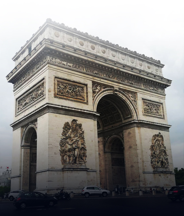 Po ciężkiej przeprawie komunikacją miejską, gdzie na bramkach nie przechodził nam skasowany wcześniej bilet, a przez korytarze w metrze szło się w nieskończoność. W końcu dotarliśmy na plac Charlesa de Gauelle’a, aby zobaczyć Łuk Triumfalny, monumentalny pomnik, postawiony na cześć tych, którzy polegli podczas rewolucji francuskiej oraz wojen napoleońskich. Kupiliśmy bilety ( dla studentów i osób do 25 roku życia większość atrakcji w Paryżu jest darmowa). Weszliśmy schodami na górę Łuku, gdzie ukazał się nam Paryż razem z Wieżą Eiffela. Musimy przyznać, że warto wejść na górę, zwłaszcza wieczorem, kiedy wieża i budynki są pięknie podświetlone.