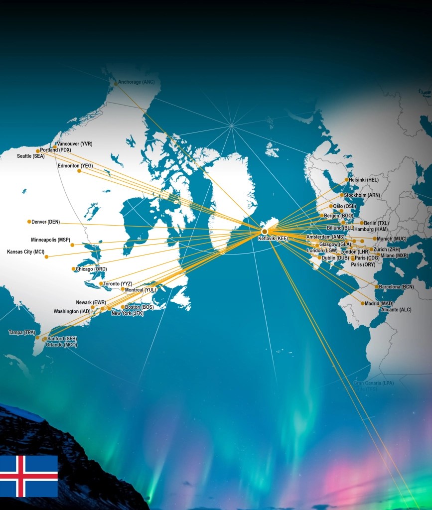 Teraz czas na trochę informacji o islandzkiej linii lotniczej Icelandair. To właśnie tą linie wybraliśmy na naszą podróż do Nowego Jorku oprócz tego połączenia ma ona również wiele innych połączeń do Stanów Zjednoczonych takich jak np. Chicago, Waszyngton czy Filadelfia oraz Kanady, Belgii czy Hiszpanii. Linia jest bardzo atrakcyjna cenowo. Na lotnisku możemy spotkać mnóstwo pracujących tam Polaków, my trafiliśmy na nich 2 razy na rozmowie przed wylotem do USA. Warto wspomnieć również o bardzo miłej obsłudze, która jest bardzo pomocna i wyrozumiała. Jeśli chodzi o sam lot to do Nowego Jorku trasa trwa tylko 6 godzin, co sprawia że lot z przesiadką w Islandii jest bardzo korzystny ze względu na krótszy czas siedzenia ciągiem w samolocie. Stamtąd dolecieliśmy bezpośrednio do Stanów Zjednoczonych, ale o tym w następnym poście.