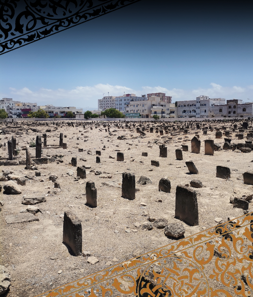 Na podstawie tego zdjęcia, wbrew pozorom nie przedstawiającego starego cmentarza, ale regularnie uczęszczanego na co dzień warto wspomnieć o cmentarzach w Omanie, które znacząco różnią się od tych, które może zobaczyć w krajach zachodnich. Według islamu cmentarze powinny być miejscami prostymi, pozbawionymi wszelkich zdobień czy dekoracji. W Omanie groby oznaczane są jedynie prostymi kamieniami lub płytami, a czasem nawet tylko kopcami ziemi. Nie znajdziemy tutaj świec, czy ozdób zgodnie z islamskim podejściem do śmierci i pamięci o zmarłych. Jeśli chodzi o lokalizację cmentarzy to znajdują się one zazwyczaj na obrzeżach miast czy wsi i nigdy nie sąsiadują z meczetem.